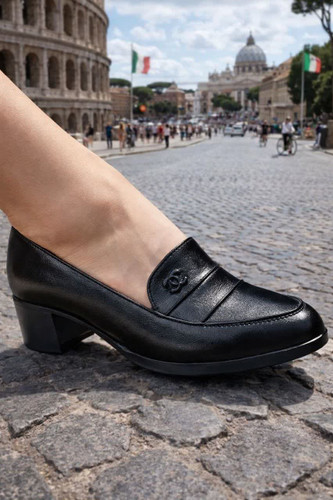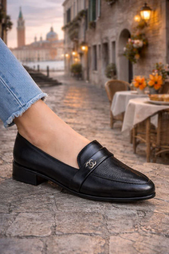 کفش زنانه کالج رویه طرح چرم با یراق خارجی درجه1 کد 1252