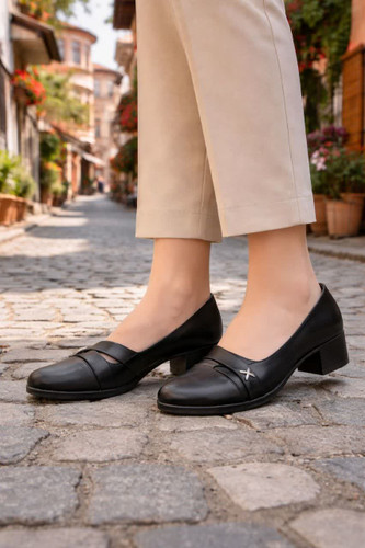 کفش زنانه پاشنه دار طرح چرم خارجی کد 1257