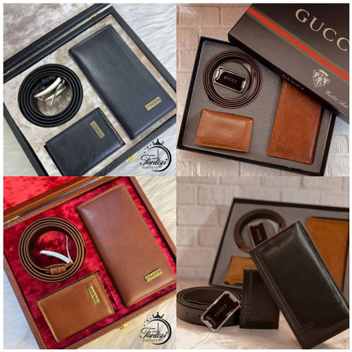 ست کمربند و کیف پول و جاکارتی چرم مردانه کد ۱۱۴۶